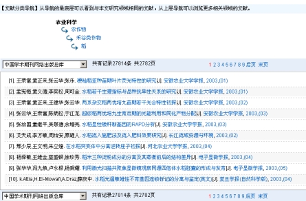 点击任意类型文献的题名,该类文献将在图表下面显示出来,每页